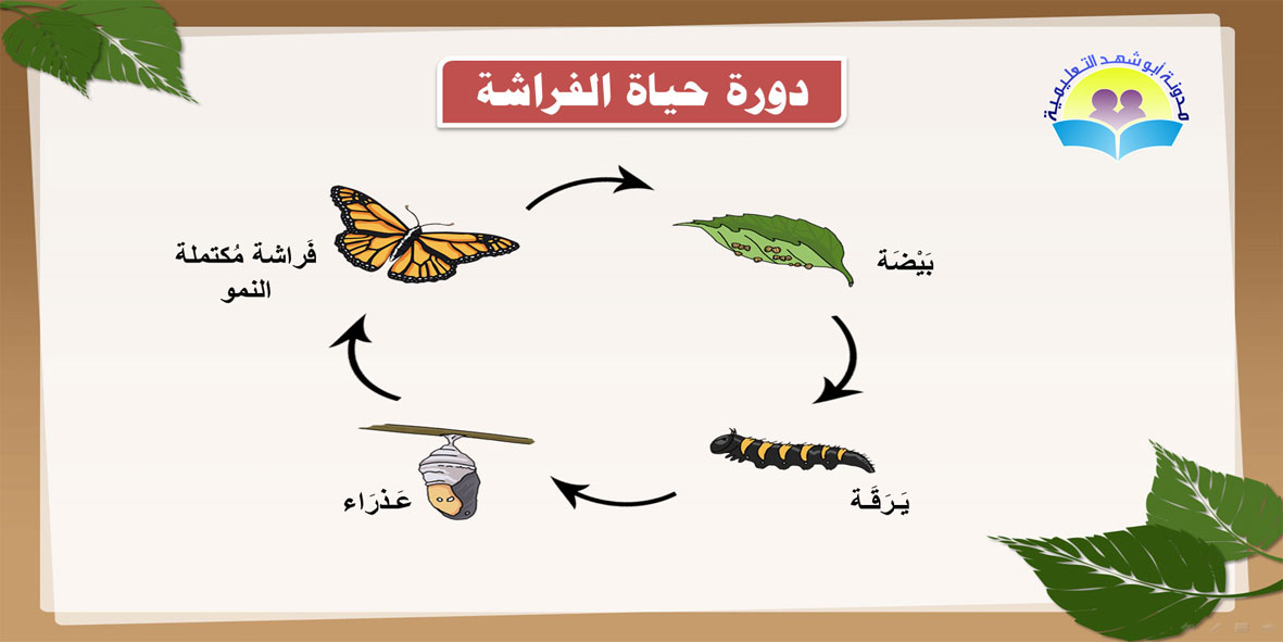 أى مما يلى يمثل التتابع الصحيح لدورة حياة الفراشة علمني