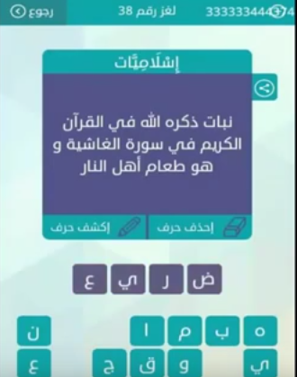 جواب سؤال نبات ذكره الله فى القرآن الكريم فى سورة الغاشية وهو طعام