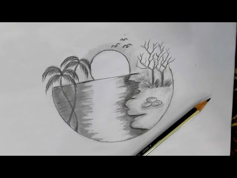 رسم منظر طبيعي بالرصاص سهل جدا خطوه بخطوه للمبتدئين Youtube